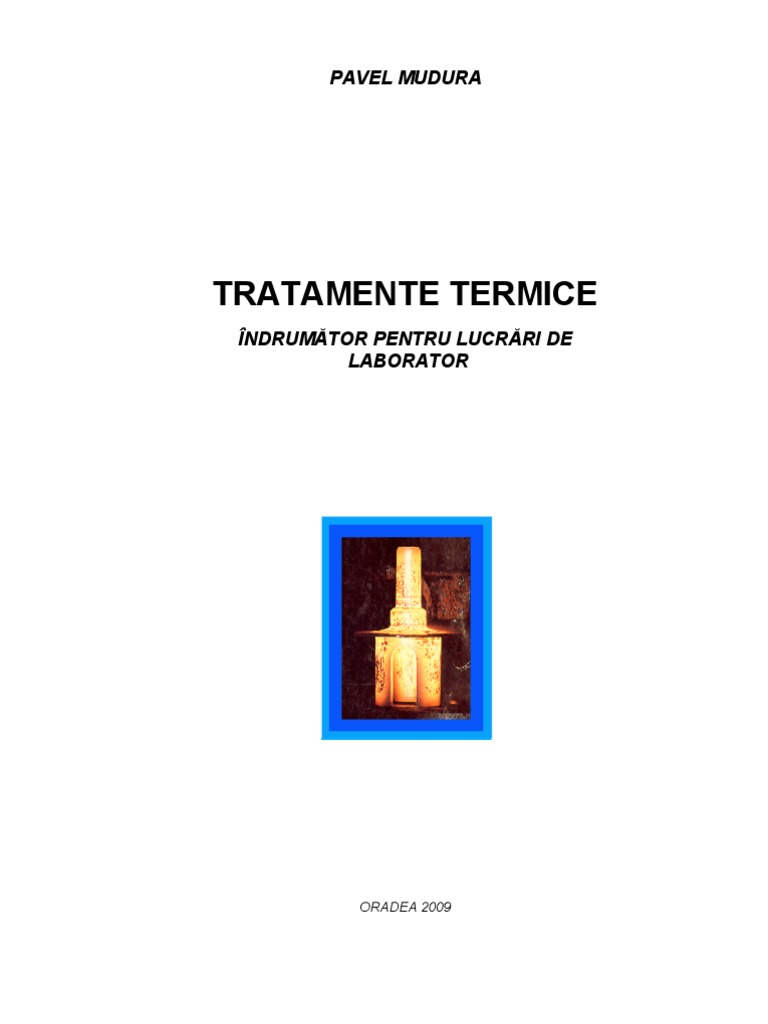 BIBLIOGRAFIE 1. Mudura, P., Introducere n teoria Tratamentelor termice, Ediia a II-a, Ed. Univ. din Oradea, 2008. 2. Mudura, P., Tratamente termice- curs, Oradea 2008 3. Cari I., - Tratamente termice, ndrumtor pentru lucrri de laborator IPTV Timioara, 1989. 4. Dulmi I., .a., -Tehnologia tratamentelor termice, EDP, Bucureti, 1982. 5. Mitelea I., Budu V. - Studiul metalelor - ndreptar tehnic. Ed. Facla Timioara, 1987. 6. Munteanu A.,- Probleme i aplicaii n tratamente termice i termochimice - Univ. Brasov,1983. 7. Vermean G.,- Tratamente termice- Indrumtor, Ed. Dacia,ClujNapoca, 1988. 8. Vermean G., .a., - Tratamente termice, lucrri de laborator, [Link]-Napoca, 1987.