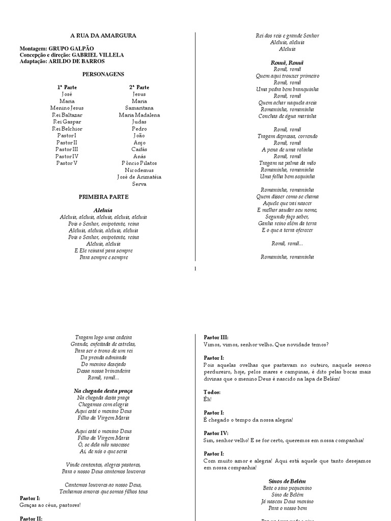Romaninha, romaninha Quem disser como se chama Aquele que vai nascer E melhor saudar seu nome, Segundo faço saber, Ganha reino além da terra E o que a terra oferecer