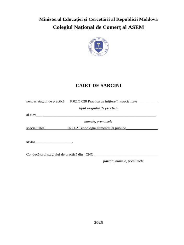 pentru stagiul de practică___P.02.O.028 Practica de iniţiere în specialitate___________,