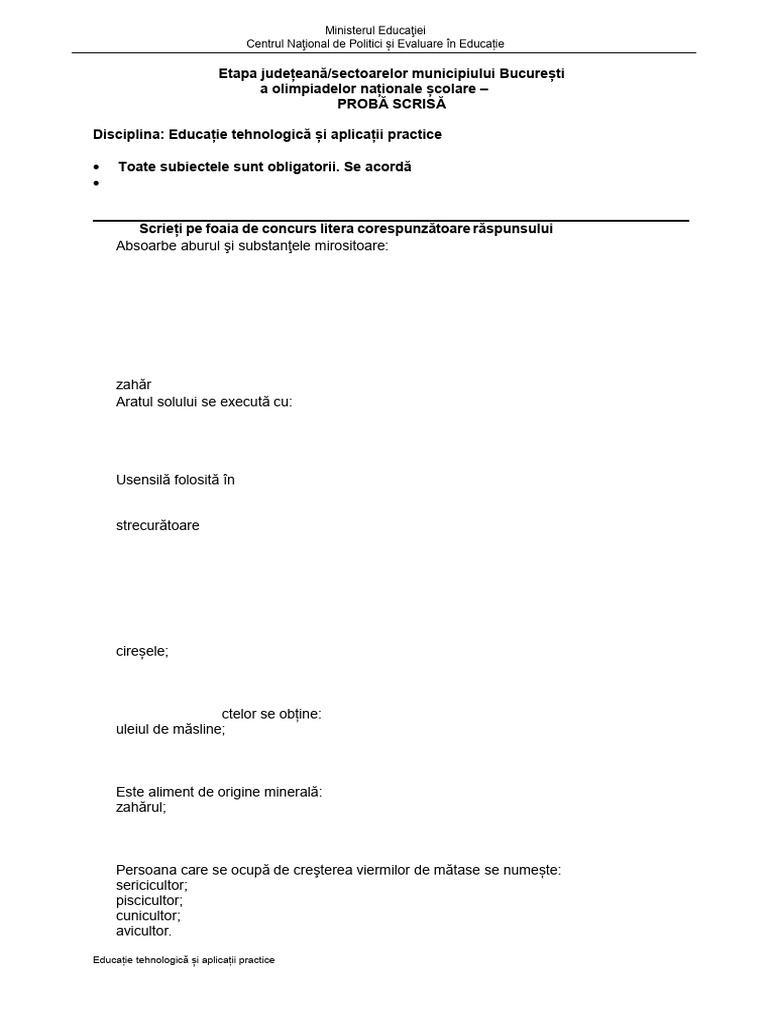 • Toate subiectele sunt obligatorii. Se acordă zece puncte din oficiu.