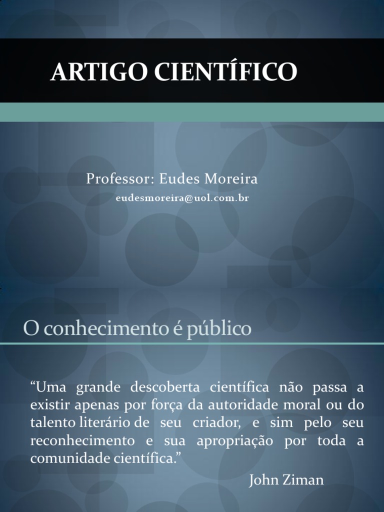 Uma grande descoberta cientfica no passa a existir apenas por fora da autoridade moral ou do talento literrio de seu criador, e sim pelo seu reconhecimento e sua apropriao por toda a comunidade cientfica. John Ziman