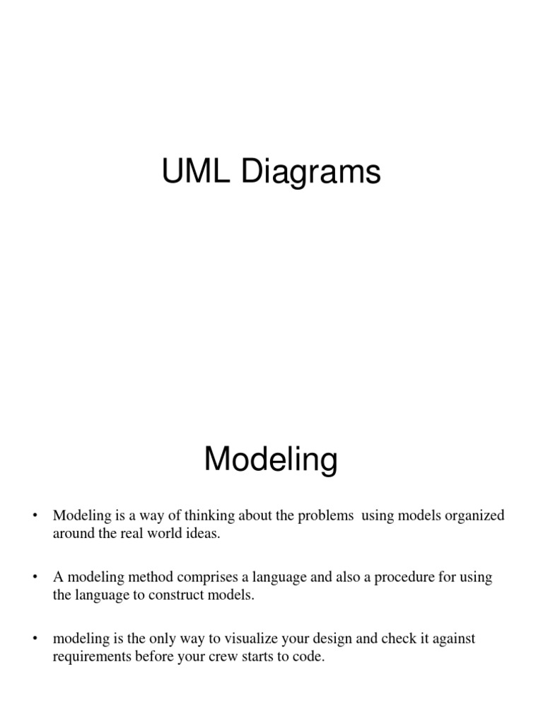 Modeling is a way of thinking about the problems using models organized around the real world ideas. A modeling method comprises a language and also a procedure for using the language to construct models. modeling is the only way to visualize your design and check it against requirements before your crew starts to code.