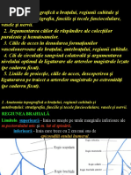 4. Ramurile arterei brahiale: a. ramuri musculare care vascularizeaza muschii lojei anterioare a bratului b. artera nutritiva a humerusului c. artera brahiala profunda strabate trigonul humero-rondo-tricipital impreuna cu nervul radial si ajunge in santul nervului radial de pe fata posterioara a humerusului. La marginea laterala a humerusului se imparte in doua ramuri: -artera colaterala radiala care strabate septul intermediar lateral impreuna cu nervul radial si se anostomozeaza cu artera recurenta radiala in santul bicipital lateral. -artera colaterala medie care se desprinde posterior de humerus, coboara prin interiorul capului medial al muschiului triceps brahial si se anastomozeaza cu artera recurenta interosoasa posterior pe epicondiliul lateral. d. artera colaterala ulnara superioara. Dupa ce perforeaza septul intermuscular medial insoteste nervul ulnar si ajunge intre epicondiliul medial si olecran. Profund de muschiul ulnar al carpului se anostomozeaza cu ramura posterioara a arterei recurente ulnare. e. artera colaterala ulnara inferioara trece posterior de nervul median si se imparte in doua ramuri: ramura anterioara (care se anastomozeaza cu ramura anterioara a arterei recurente ulnare) si ramura posterioara (care perforeaza septul intermuscular media si se anastomozeaza cu artera colaterala medie.)