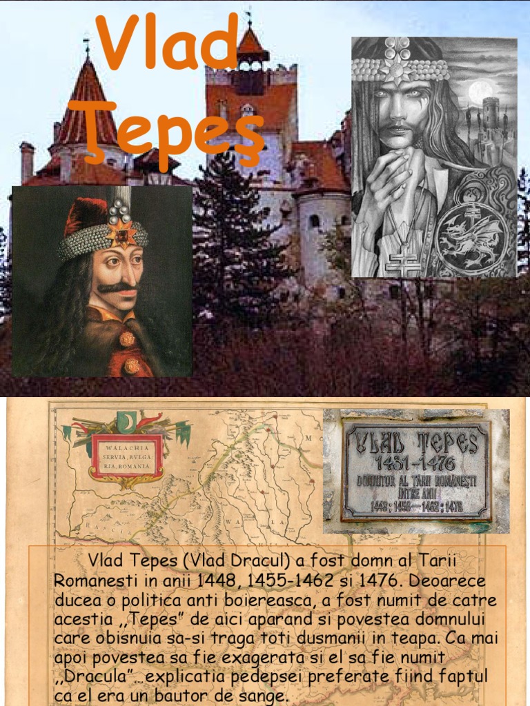 Istoria lui Vlad Tepes este invaluita de mister si legenda, iar adevarul este ca nimeni nu stie unde se termina legenda pentru a lasa loc istoriei. Fiind un personaj nu numai istoric, ci si literar si folcloric voievodul a fost ales de scriitorul Bram Stoker ca erou principal al romanului sau aparut in anul [Link] atunci, Dracula si Transilvania, taramul care adaposteste misteriosul castel plin cu fantome si vampiri undeva in mijlocul padurilor intunecoase, a devenit subiectul a peste 750 de filme, documentare sau nuvele inspirate fiind de romanul scriitorului irlandez. Se spune ca transformarea lui Vlad Tepes in Contele Dracula insetat de sange se datoreaza faptului ca, potrivit obiceiului in acea vreme, invingatorul unei lupte isi potolea setea band sangele celor invinsi. Sa fie oare acesta adevarul despre Dracula? Legenda sau istorie.