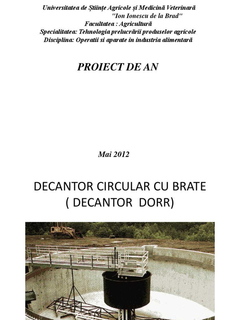 Decantorul circular cu brae se folosete la prelucrarea primar a