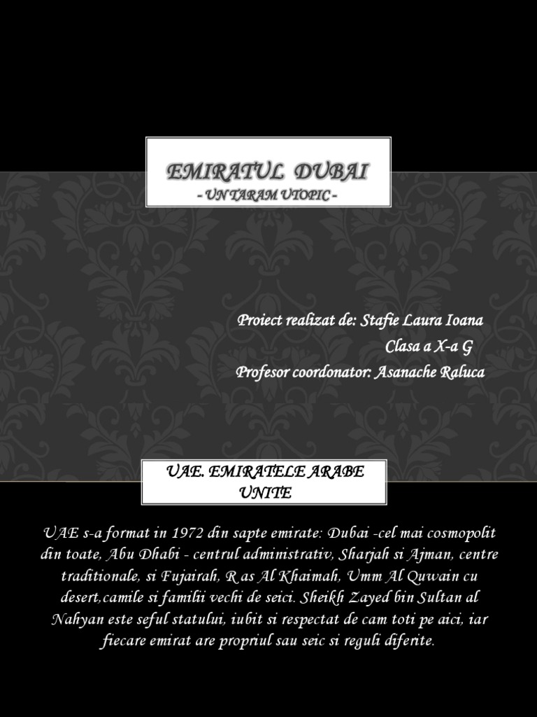 omenirii sa te duci in Dubai. Dubaiul face parte din Emiratele Arabe