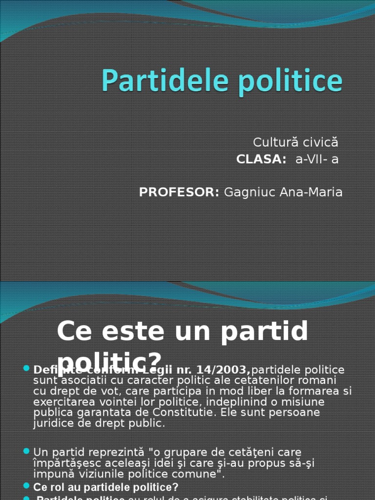 partidului trebuie sa fie prezentate in
