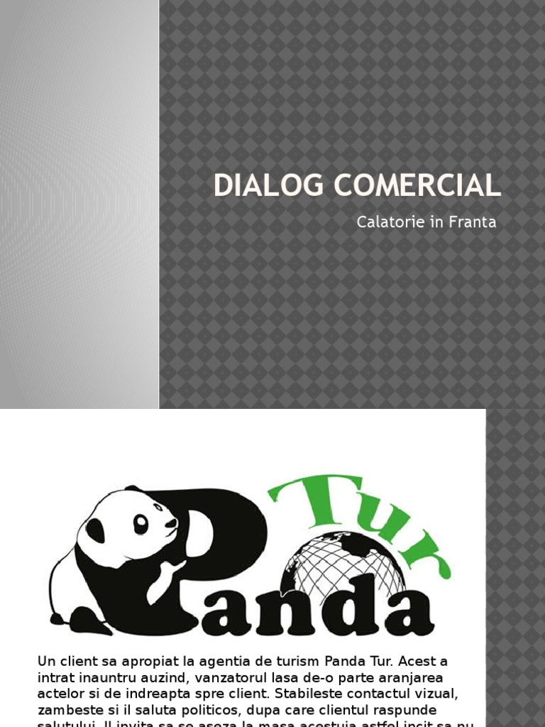 Un client sa apropiat la agentia de turism Panda Tur. Acest a