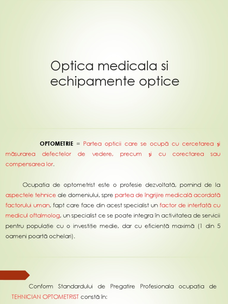 OPTOMETRIE = Partea opticii care se ocupă cu cercetarea și