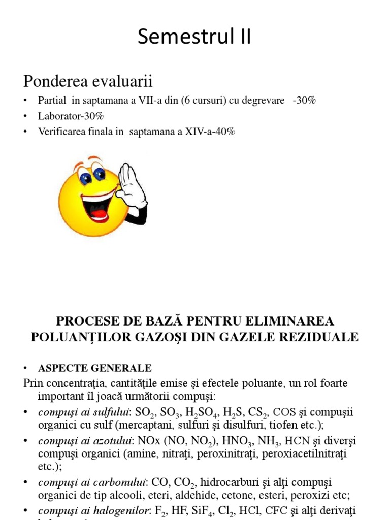 •a proceselor de bază prin care se pot elimina poluanţii respectivi din