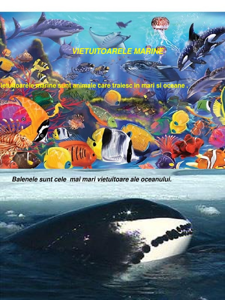 Vietuitoarele marine sunt animale care traiesc in mari si oceane ..