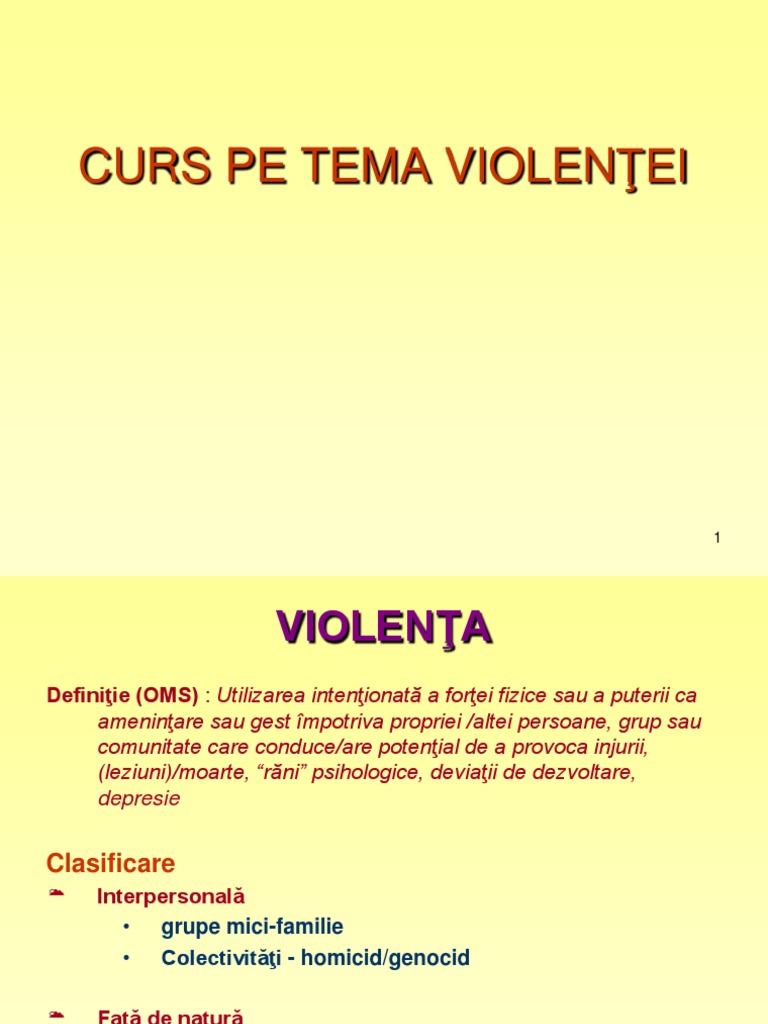 Definiţie (OMS) : Utilizarea intenţionată a forţei fizice sau a puterii ca