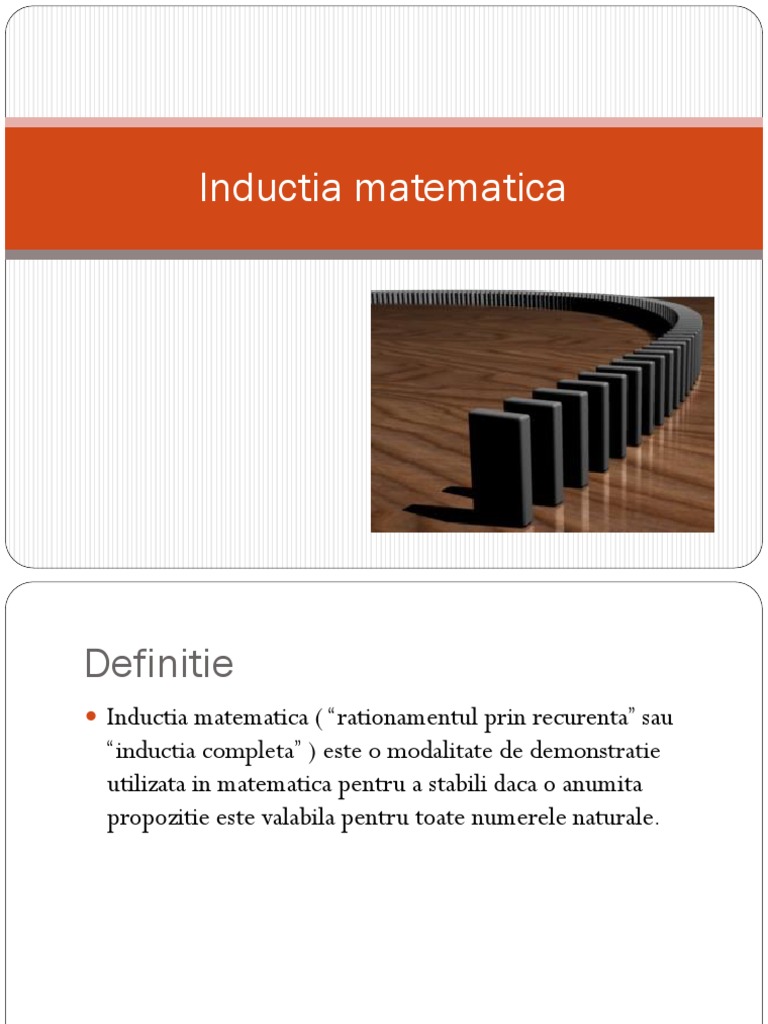 Inductia matematica ( “rationamentul prin recurenta” sau