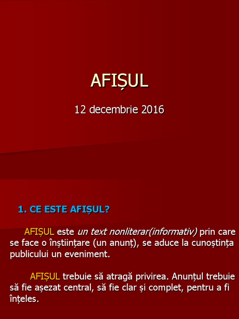 AFIȘUL poate fi de tip RECLAMĂ (promovare de produse,
