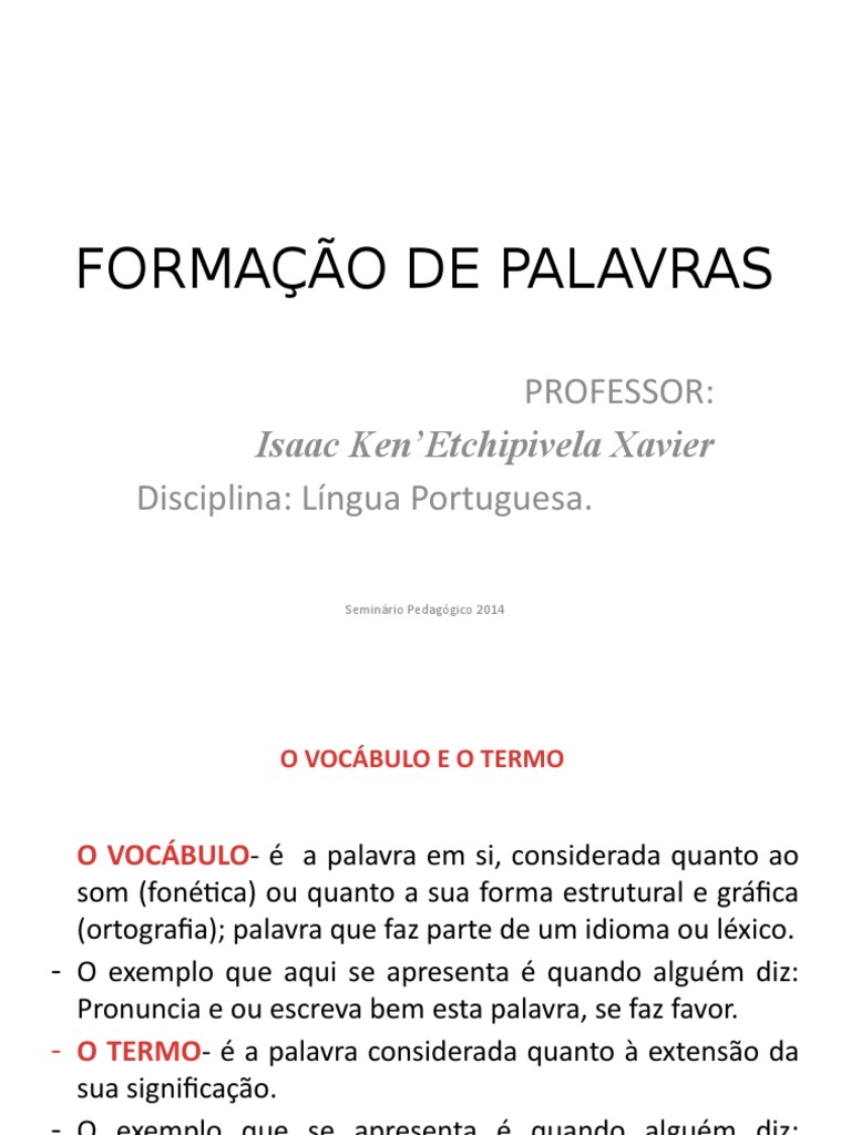 O VOCÁBULO- é a palavra em si, considerada quanto ao