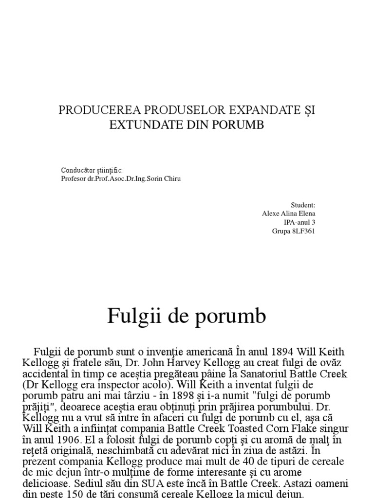 Fulgii de porumb sunt o invenţie americană În anul 1894 Will Keith