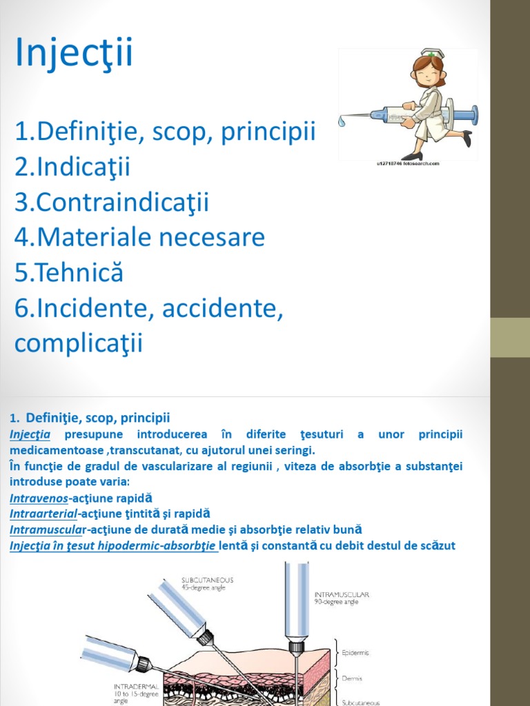 Injecţia presupune introducerea în diferite ţesuturi a unor principii
