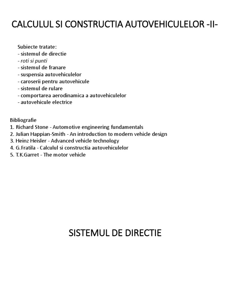 ROL: asigurarea manevrabilitatii vehiculului prin poziționarea roților directoare pe traiectoria