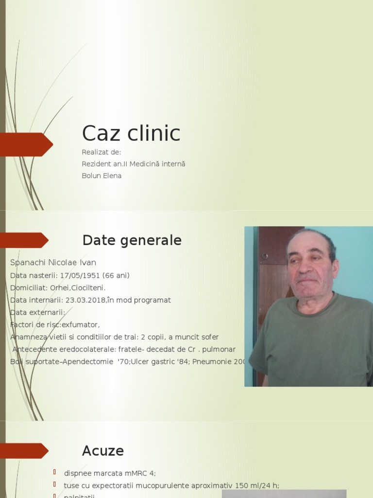 Starea generala cu agravare de 1,5 luni cu progresarea dispneii, tuse cu sputa