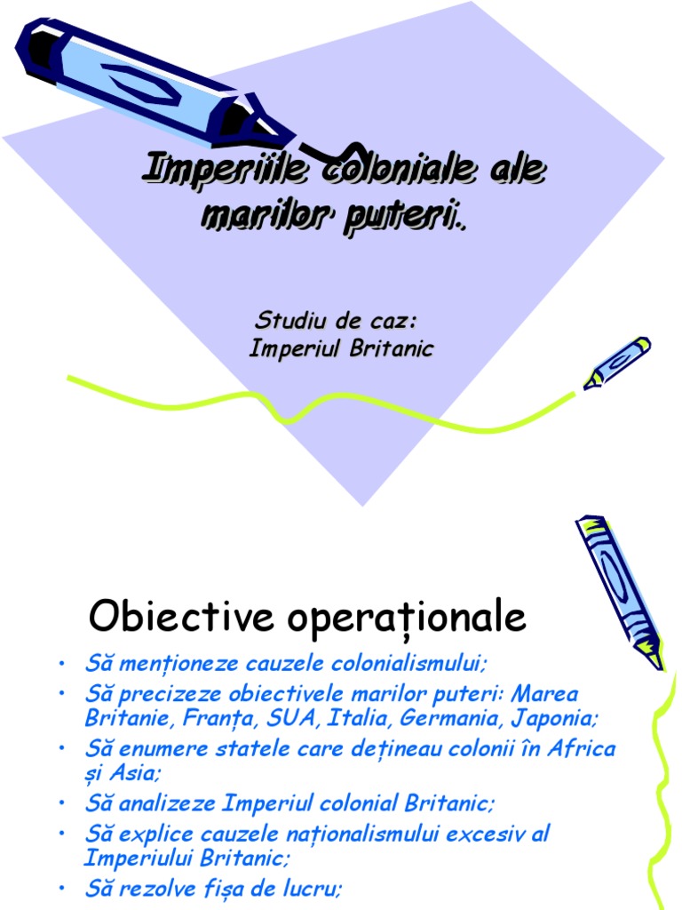 • Să analizeze Imperiul colonial Britanic;