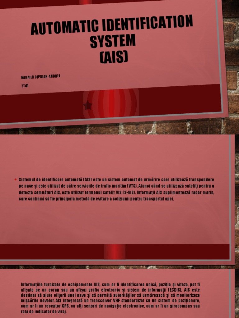 • Sistemul de identificare automată (AIS) este un sistem automat de urmărire care utilizează transpondere