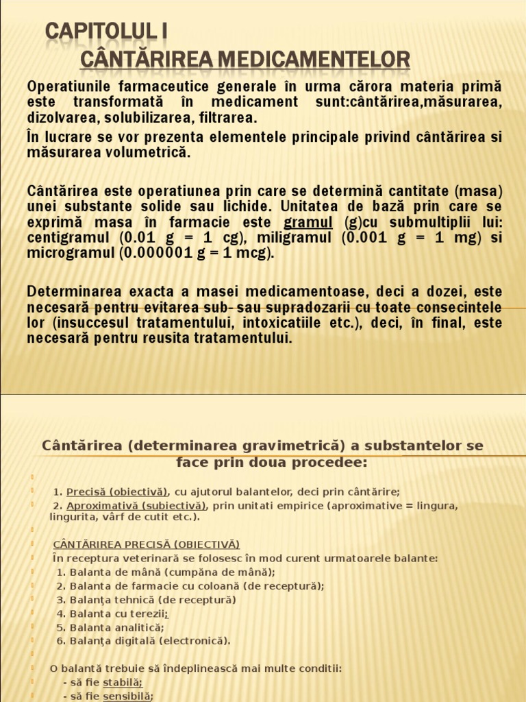este transformată în medicament sunt:cântărirea,măsurarea,