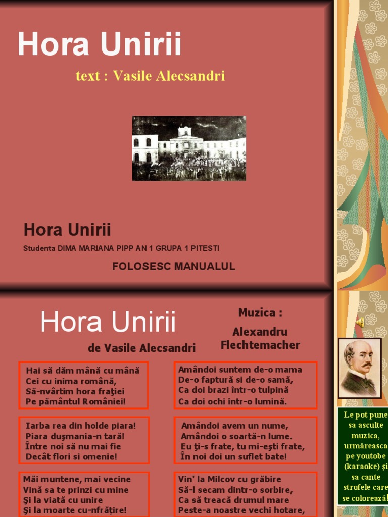 Şi la viată cu unire Ca să treacă drumul mare se colorează!