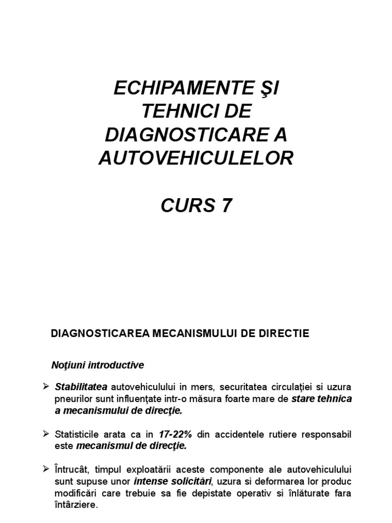 DIAGNOSTICAREA MECANISMULUI DE DIRECTIE