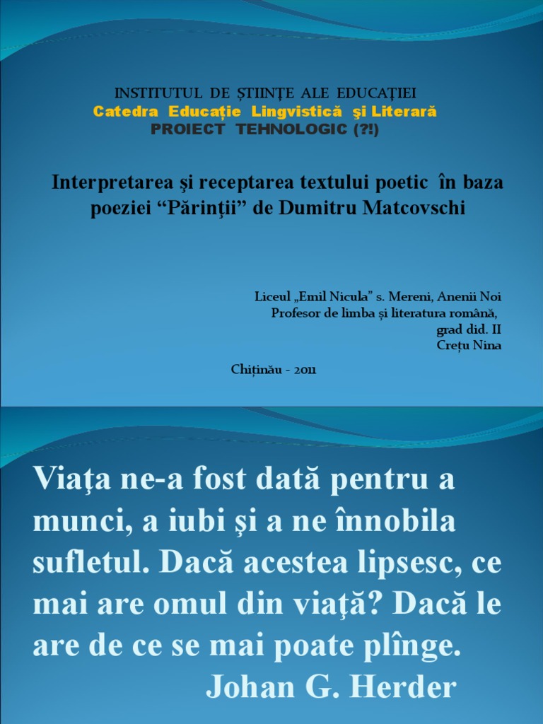 poeziei “Părinţii” de Dumitru Matcovschi