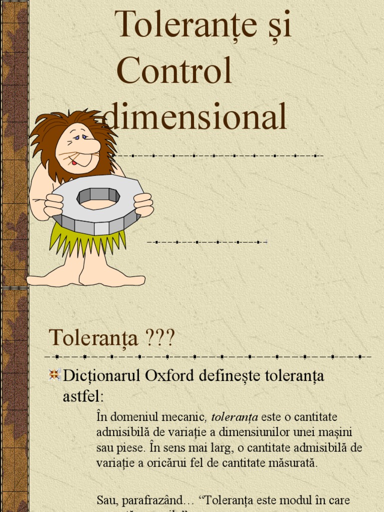 Mărimea toleranţelor la dimensiuni (precizia dimensională) şi mărimea jocurilor în
