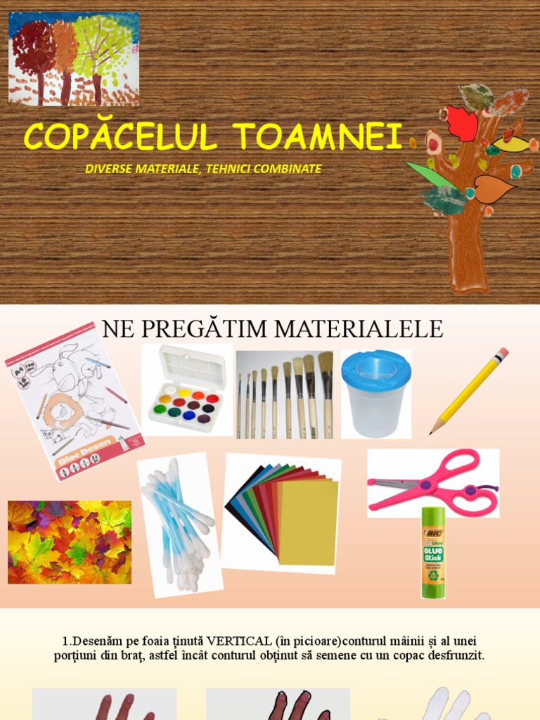 [Link]ăm pe foaia ținută VERTICAL (în picioare)conturul mâinii și al unei