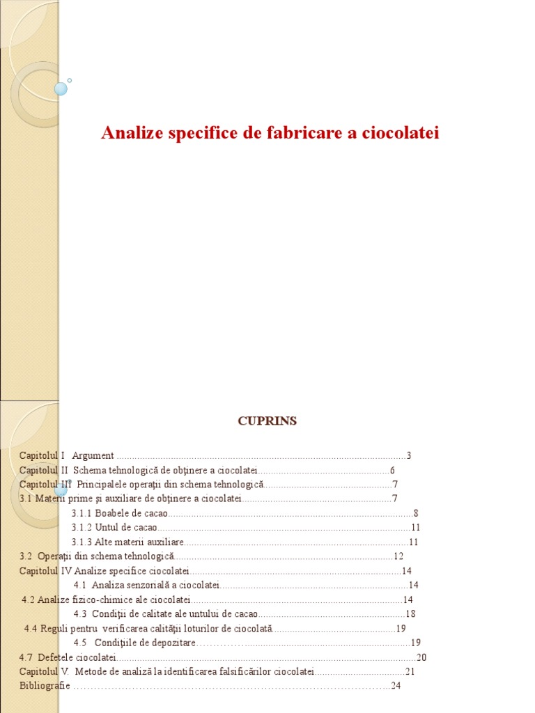 Capitolul IV Analize specifice ciocolatei..................................................................................14