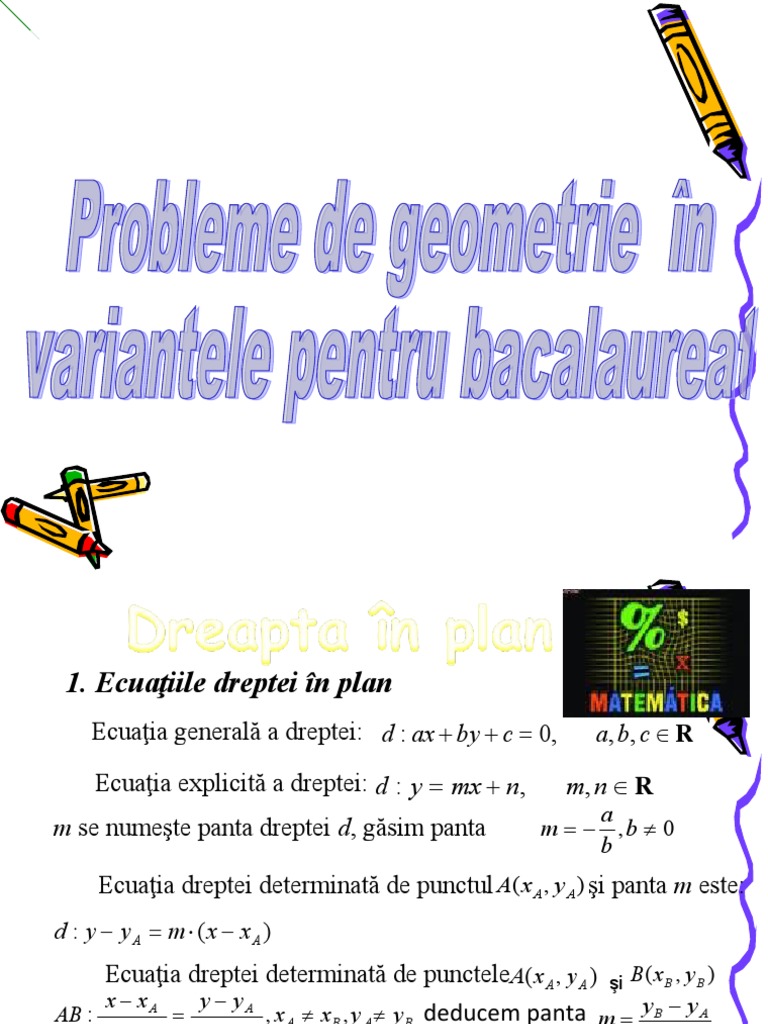 Ecuaţia dreptei determinată de puncteleA( x A , y A ) şi B( x B , y B )