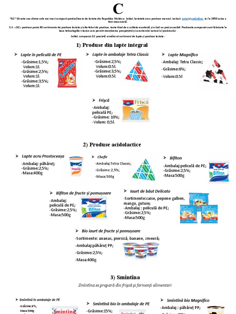 Astfel, compania JLC prezintă următorul sortiment de lapte și produse lactate :