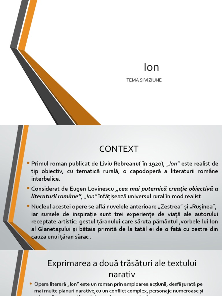 • Primul roman publicat de Liviu Rebreanu( în 1920), „Ion” este realist de