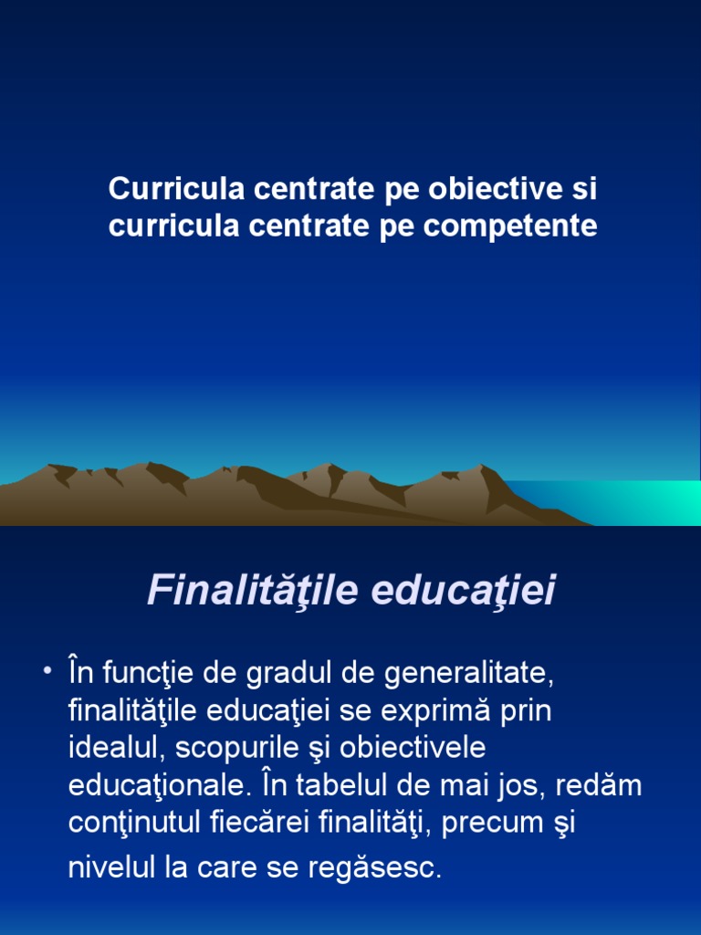 Curricula centrate pe obiective si