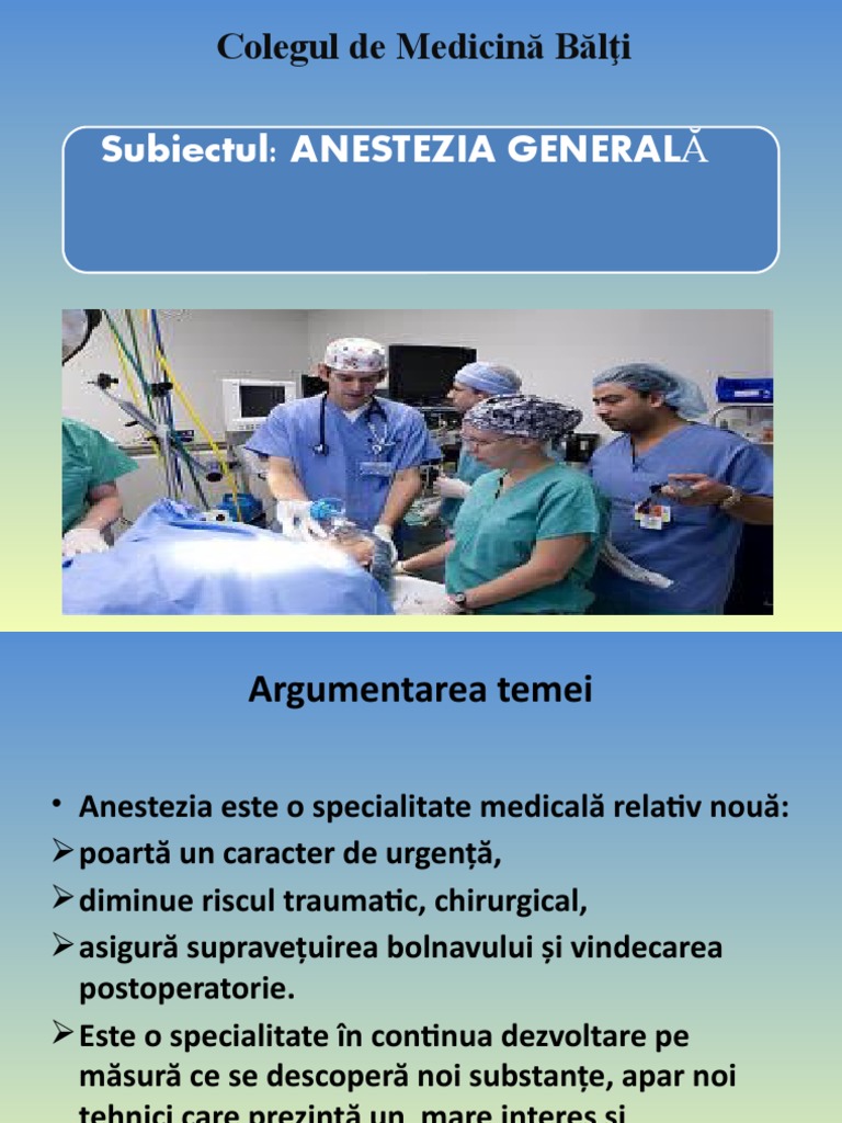 Subiectul: ANESTEZIA GENERALĂ