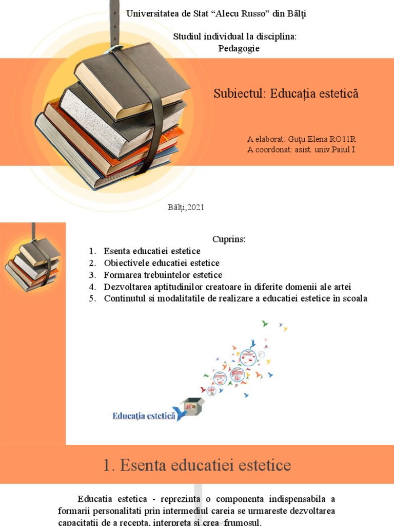 important al scolii. În ceea ce priveste aptitudinile artistice, educatia estetica urmareste