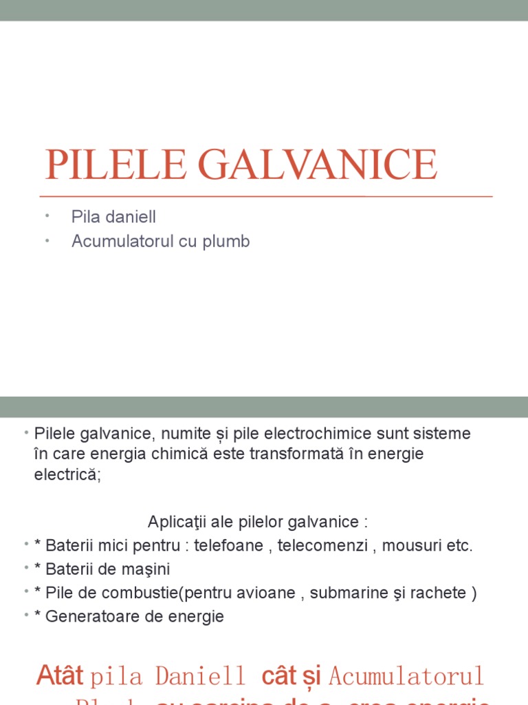 • Pilele galvanice, numite și pile electrochimice sunt sisteme
