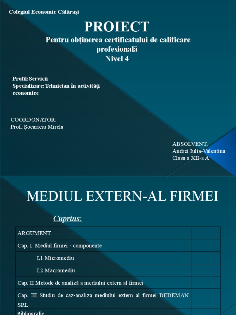 Cuprinde totalitatea factorilor din economie care influențează capacitatea companiei Dedeman