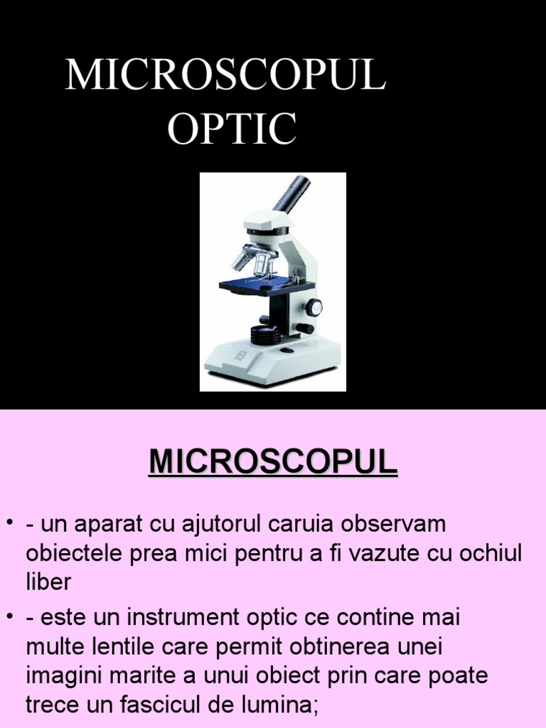 preparatului (au puterea de a mări de 4x, 10x, 40x