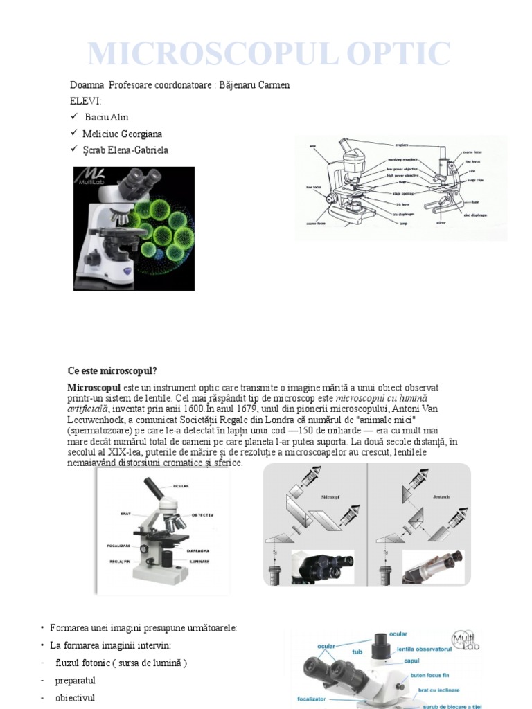 Microscopul este un instrument optic care transmite o imagine mărită a unui obiect observat