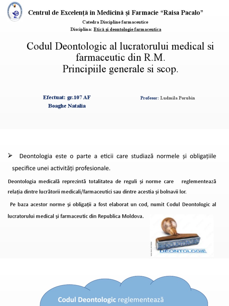 Disciplina: Etică şi deontologie farmaceutica