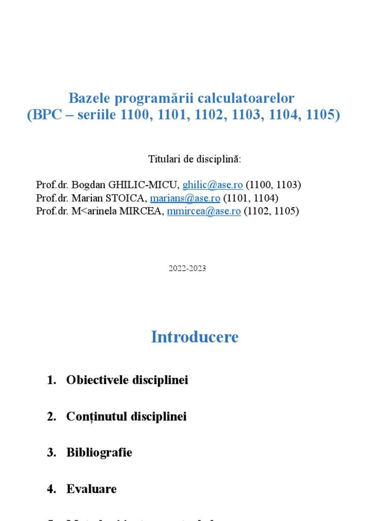 1. Bazele programarii calculatoarelor : suport de curs, Bogdan Ghilic-Micu,