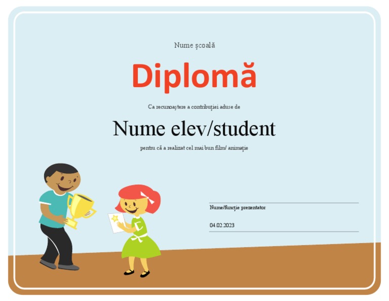 Diplomă: Nume Elev/student