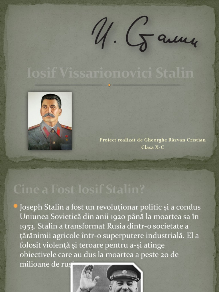 Stalin a fost fiul unui cizmar, Vissarion Ivanovici, şi al unei femei simple,