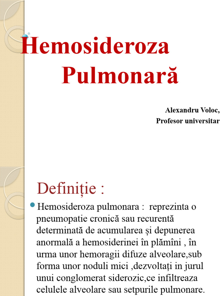 Hemosideroza pulmonara idiopatica la copil : Dr.