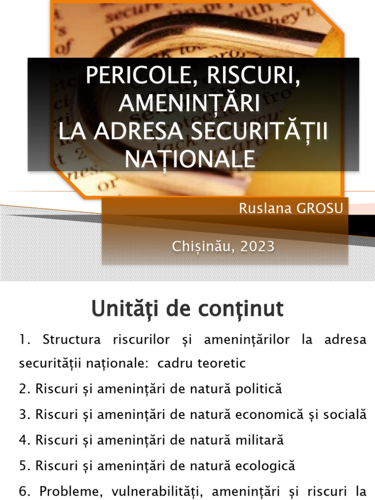 - să caracterizeze natura riscurilor și amenințărilor la adresa