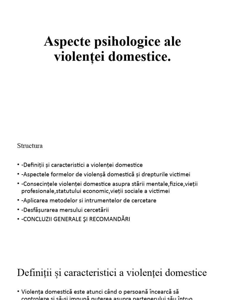 • -Aspectele formelor de violenșă domestică și drepturile victimei