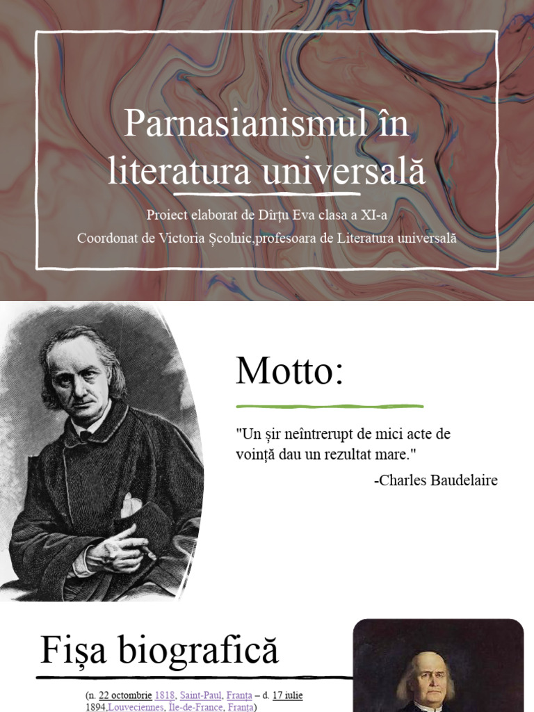 Coordonat de Victoria Școlnic,profesoara de Literatura universală